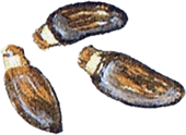 (Fructus cardui marianae). Se hebbt en harte, Schale un sowat, as