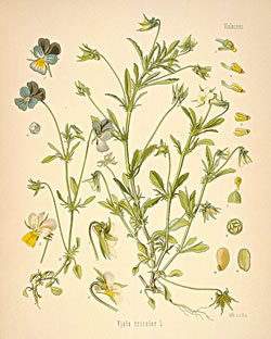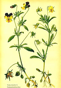 Stiefmütterchenkruut is in de Kloosterheilkunn as Mittel to'n