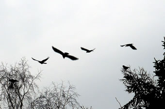 seten an de twintig Krein. Se flögen vun een Boom up den annern