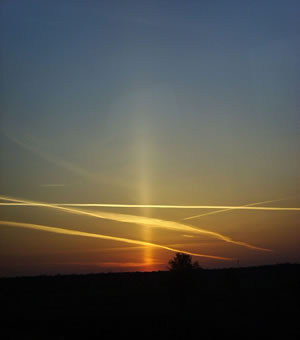 Wat allens üm de Sünn lücht: Mehr vun Sünnlicht, Ies un Water, verklaart vun Marlou Lessing All uns Licht kümmt vun de Sünn; man dat Sünnenlicht lücht in ünnerscheedlich Wiesen. De Fans vun de Sünn hebbt hier al lesen kunnt, woans de Regenbagen tostann kümmt un wat achter den Halo vun de Sünn steken deit. De Sünnschienkieker hett ok verklaart, woso de Sünn rood warrt, wenn Se wiet nerrn an'n Horizont steiht. Hier wüllt wi nu noch twee Phänomene besnacken: den Lichtpieler ("Lichtsäule") un den legendären Grönen Strahl vun de Sünn. De Lichtpieler Den lootrechten Lichtpieler över (un ok ünner) de Sünn finnst sünnerlich bi deep stahn Sünn. Ok wenn de Sünn achter den Horizont is, kannst den Lichtpieler faken noch sehn; mennigmaal warrt he denn eerst richtig hooch un hell! Is en majestäätschen Anblick. In de korten Sommernächt heff ik as Deern faken opseten un vun Sünnünnergang bet Sünnopgang den geheimnisvullen orangeklöörigen Pieler ankeken, de över den Horizont wannern dä un angeev, woneem de Sünn nu ünner den Horizont langswanner bet se wedder hoochkeem un allens sik in en fantastischen Morgenroot oplöös. Wat is dat för en Finger vun Licht, de us dor de Sünn wiest, 'neem wi ehr nich sehn köönt? Folgt he de Sünn, folgt de Sünn em? Dat sünd so Fragen, de Deerns sik stellt. Man opwussen Lü ok! De Lichtpieler mutt wedder en Phänomen ut uns Atmosphäär ween, dat is klaar. Dat mutt mit wat to doon hebben, wat in de Luft rümmersweevt un dat Licht jichenswie brekt, spegelt orr anners trüchsmitt. Un meist dat eenzige, wat dat dor gifft, is Water un sin faste Foorm, Ies. Alle annern Substanzen dor sünd entweder gasförmig (ok de ganzen Schiet-Afgase, de Minschen produzeert), orr se sünd düüster un sluckt dat Licht ehrder, as se dat reflekteert (t.B. Ruß, Stoff, Vulkanasche, Dreck ut Fleegtüüch-Drievwarke...). Water un Ies sünd de Töver-Substanzen, de ut de Sünn so en schönes Kaleidoskop vun Lichteffekte rutlockt. Water in fleten Foorm maak den Regenbagen, Water in faste Foorm Ies maak den Halo. Un ok hier is dat wedder Ies, dat den Lichtpieler opglöhn lett. Dat de Pieler to sehn is, mööt lütte