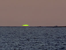 (dat an'n minnsten braken is) is rood, Villicht höört Se ja een Dag to de Glücklichen, de den Grönen Strahl sehn dröfft. Denn wünsch ik Se, dat de "goden" Sagen recht hebbt un dat de Strahl Glück bringt. Man egaal, wat dat Glück bringt orr nich: Dat Schöönste is doch, dat Se in Ehr kort Minschenleven en wunnerbaar Natuurphänomen sehn dröfft, dat dat al Johrmilliarden lang gifft, so lang de Eer besteiht un de schönen Natuurgesetten, de ehr regeert. |