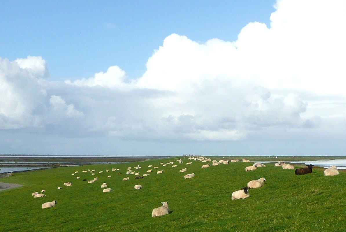 loopt veel Schaap an de Dieken. Se holt dat Gras koort un trampelt