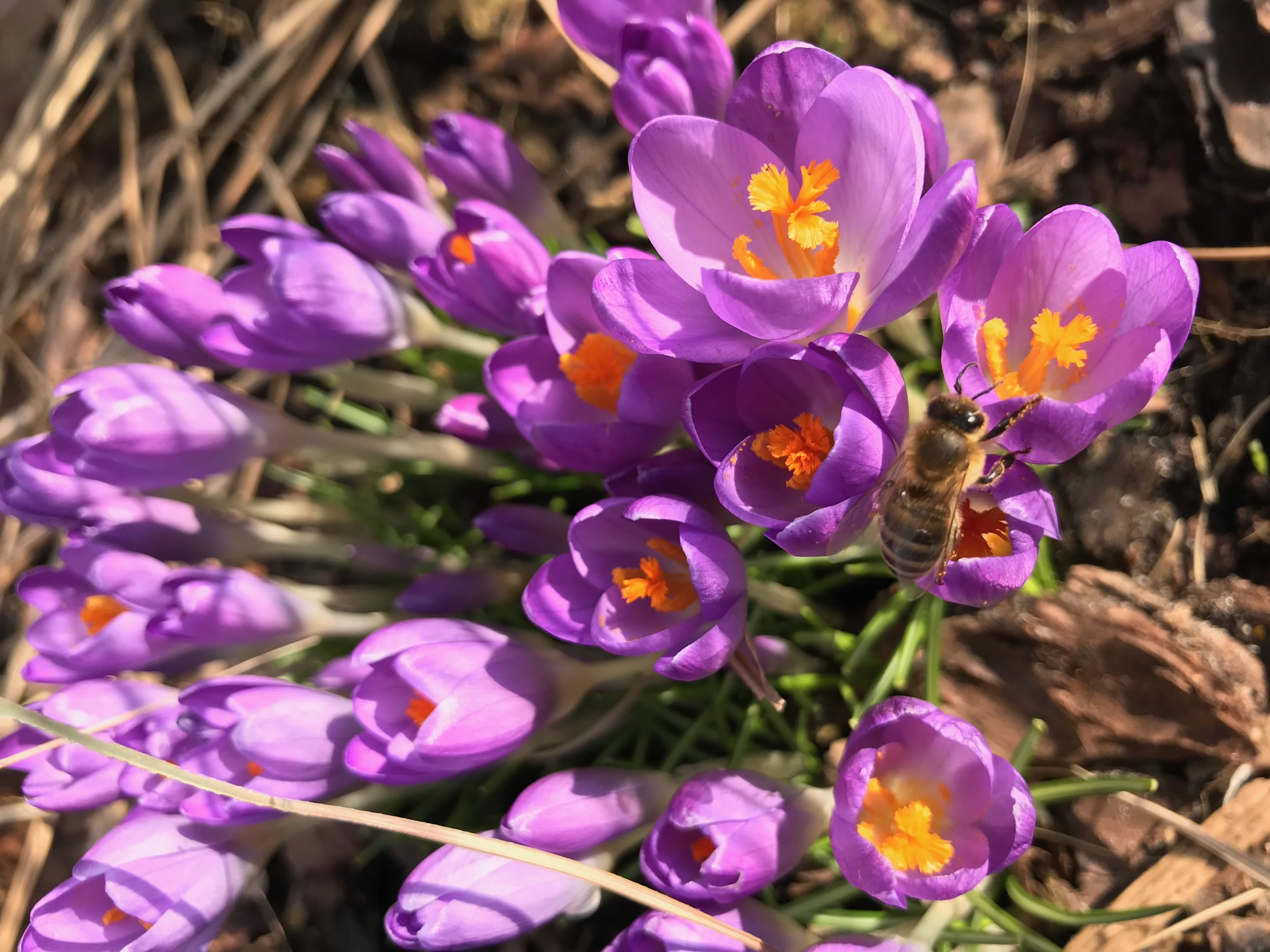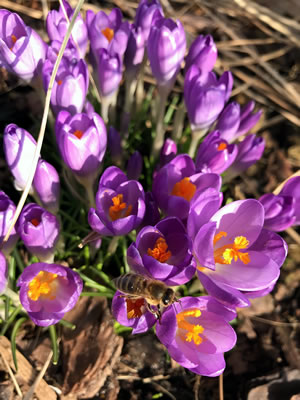De Februar is aver nich de Maand för Honnigimmen. Opstunns sünd se noch in Winterroh in ehrn Stock, Dusende Immen tosamen in en Aart Druuv. De Königin sitt in de Merrn vun de Druuv, un de Immen warmt den ganzen Immenbulten af un an dör Bewegen vun ehr Flögelmuskeln. So kann nüms verfreren; liekers stravt mennig Immen in'n Winter dör Entkräftung. De Immen fleegt eerst ut, wenn dat stüttig 10°C warm is, denn se köönt anners as Hummeln nich ziddern. Hummeln köönt mit'n Achterliev bibbern un so beten Warms tostannbringen; Immen sünd, wenn dat miteens küll warrt, hülplos un mööt so gau as mööglich trüch in'n Stock flegen. Wenn se dat nich schafft, starvt se. Allto nieschierige Immen passeert dat. Dorwegen fleegt se to Sekerheit nich bi den eersten Sünnenstrahl. Nich all Immen welk blievt ok un bewacht den Stock, anner pleegt de Brood; denn de Königin leggt denn dääglich wedder Hunnerte Eier. De Honnigimm in't Bild to finnen is nich licht. Hier is en Vergröttern: De Honnigimm is eng verwandt mit de Wildimmen, dat gifft avers gewaltige Ünnerscheed:
