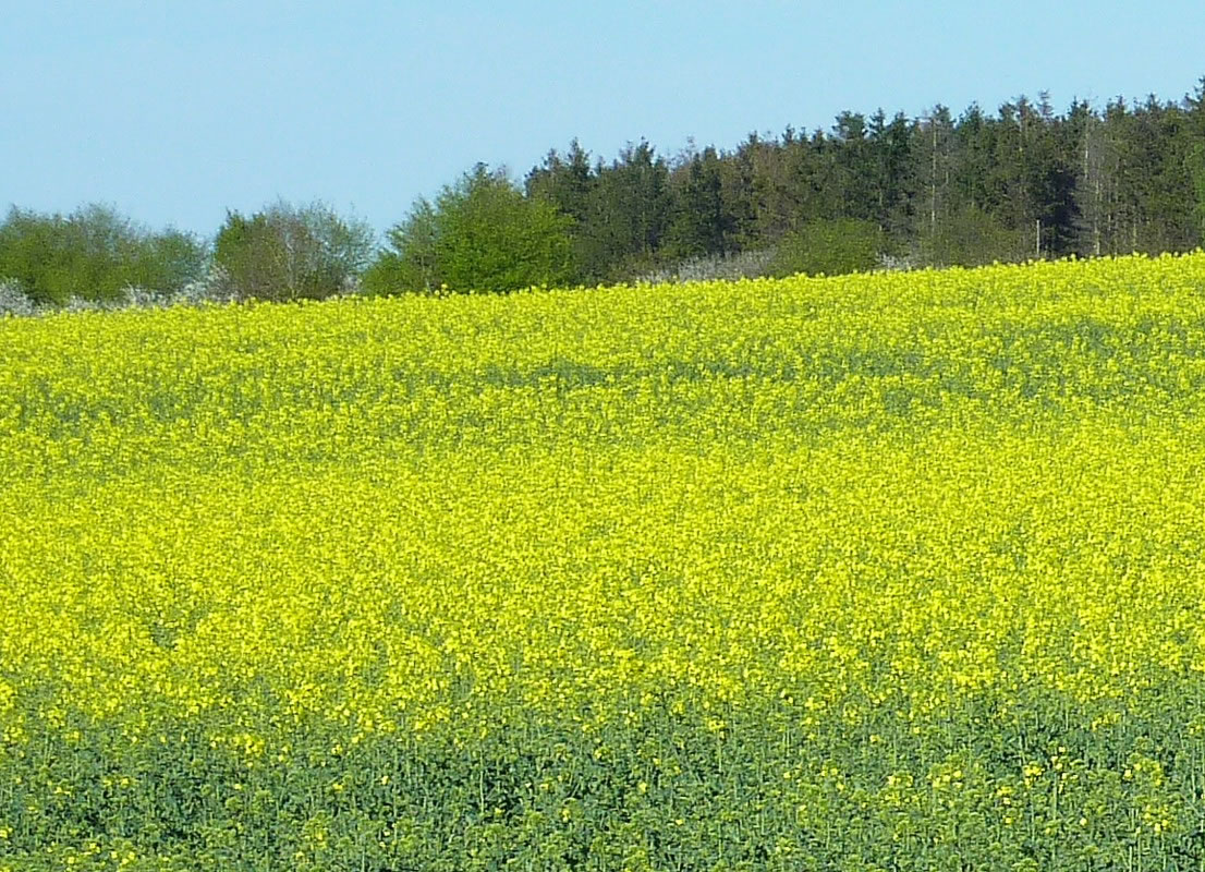 Wi hebbt noch mit den Besitzer vun den Rietstall snackt. De kunn sogoor Plattdüütsch. He hett uns noch vertellt, dat de Beek mank de Wischen de Grönau is. De groten komischen Grasbüschel kenn he ok, wüss aver nich, wat dat weer. Up unsen Nahuusweg snacken wi ganz begeistert vun uns Maifohrt. Wedder kemen wi an de Rapsfeller vörbi. Un dor stünnen doch an de een Kant vun en Rapsfeld en ganze Reeg Nandus. Anhollen un utstiegen weer eens. Mit den Knipskassen in de Hand slieker ik mi vörsichtig neger an de Nandus. De gröötst Nandu keem mi in de Mööt. He reck sien Kopp gefährlich hoch un keek mi mit sien scharpen Ogen an. Dor kreeg ik dat mit de Angst un bün gau wedder in't Auto stegen.
