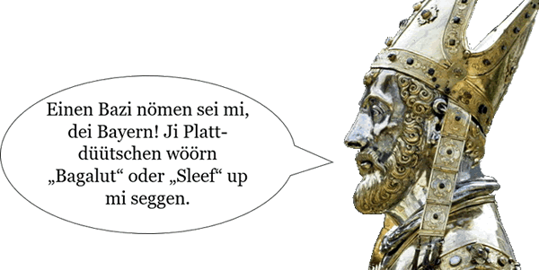 In'n Maimånd bringen dei Kollen Dåch den Lüdschnack nå sünd dat Pankrazi, Bonifazi, Servazi drei frostig Bazi un an'n Enn' fählt nie dei kolle Sophie männig Buern un Gornpüker inne Predulch. Un is dei Saat denn uplopen orrer dei Tüffeln un Georginen sünd all rut, denn hemm's af un an bäten Natt nödig, wer dei Sünn sall dat liekers noch nich tau dull måken, denn Is't kolt in'n Mai gifft Stroh un Heu!, un Wenn't Aastüüch* inne Küll möt läben, ward't 'n gaude Aust denn gäben!