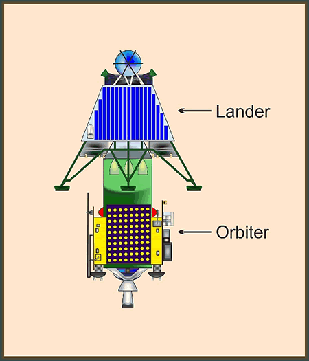 Upbau Dei Sonde bestaiht ut einen Orbiter un ut einen Landeapparaot (VIKRAM) mit den Rover PRAGYAN. Dei Sonde hätt eine Masse van 3250 kg, wobi dei Orbiter 2379 kg wägg un dei Lander, tausaome mit den 27 kg schworen Rover, 1471 kg wägen dait. An den Orbiter giff et acht Instrumente, eine hochuplösen Foto-Kamera un eine Kamera tau'n Upnähmen van ein digitaolet Hööchtenmodell van den Maondbodden. Ein Massenspektrometer schall dei dünne Maondatmosphäre unnerseuken un nao Helium-3-Isotope seuken. Dorbi werd dei Ionosphäre mit Radio-Mikrowellen ünnersöcht, dei van eine Eerd-Boddenstation upfangen werd. Ein Infrarotspektrometer un ein Synthetic Aperture Radar (süh SAR bi Wikipedia) schäöllt dat Vörkaomen van Waoter up un unner den Maond-Bodden finnen. Dortau schall ein Röntgenfluoreszenz-Spektrometer dei Chemie van den Maondbodden ünnerseuken. Van Solarzellen werd dei Orbiter mit eine elektrischke Leistung bit tau 1000 Watt versorget.