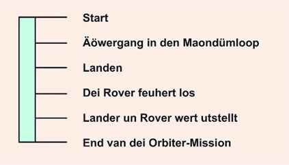 För den Orbiter settde man eiers eine Missions-Duur van ein Johr an. Dör eine unver-mauens högere Start-Geschwinnigkeit sporde man Driewstoff, un dei Mission werd vellicht verlängert up twei Johre. Lander un Rover sünd utleggt för den Bedriew van einen Maond-Dag, dat sünd 14 Eerd-Daoge. Dornao fallt dei Solarstrom-Versorgung ut.