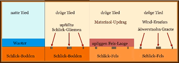 Sedimente sick affsetten dön, uck dröge Tieden nao natte