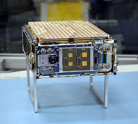 Disse CubeSat-Ruumsonde van MarCO (Mars Cube One) kann man in dat Jet Propulsion Laboratory van dei Nasa in Pasadena, Kalifornien, bekieken. Dat fautballgroote Funkgerät van MarCO hätt UHF-Funktionen (blots Empfang) und X-Band-Funktionen (Empfang un Äöwerdrägen). Dormit käönt Informationen, dei äöwer UHF empfangen werd, forts wiederleitet wern.