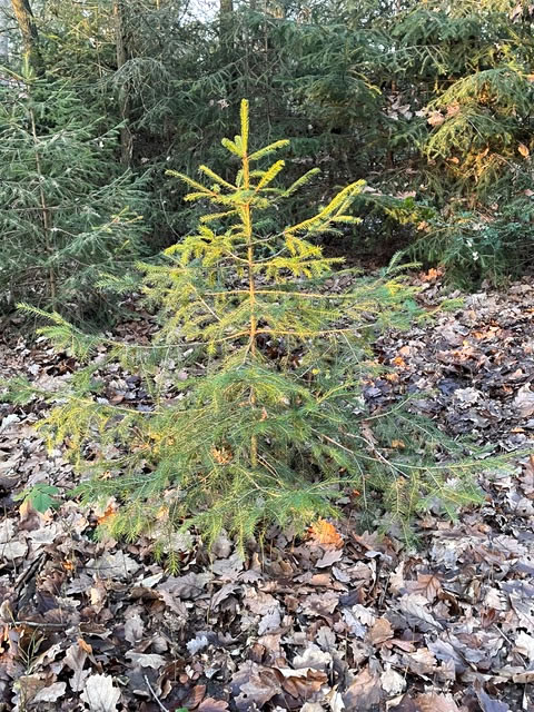 Un as wi so striep'n dörch lüchten Tann, Is dat nich en smuck lütte Ficht, Ahn Putz un Glitter un Gedööns, To'n Glück warrt se keen Dannenboom'. Dat Bild köönt