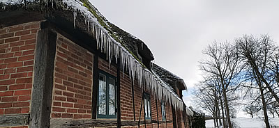 Nix maakt doch so schöne Iestappen as Strohdack in'n Winter, na Dauweder, wenn't wedder freert! Dat is veel schöner as de reinlichste un praktischste Regenrönn. Dat Bild köönt Se per Klick vergröttern! Marlou Lessing |