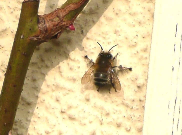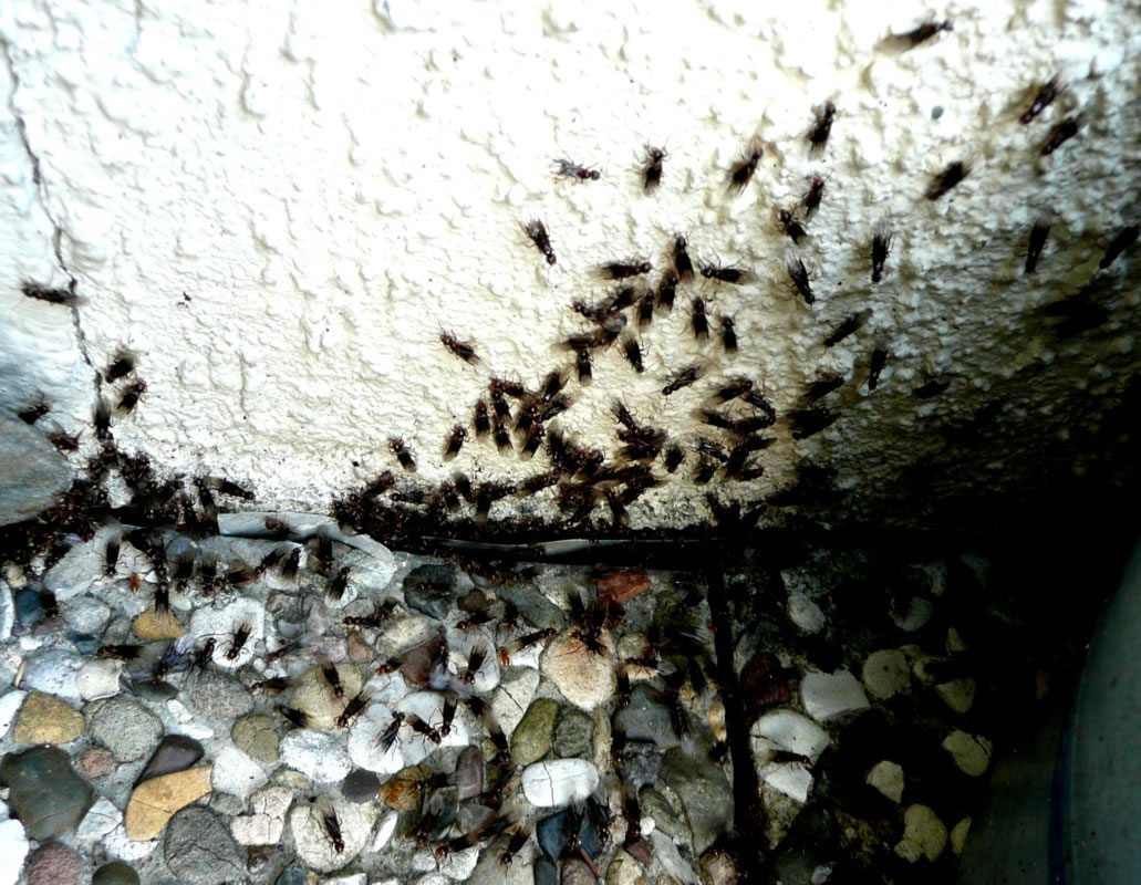 ut de Ritzen vun de Terrassenplatten un krabbeln denn de Wand hoch.