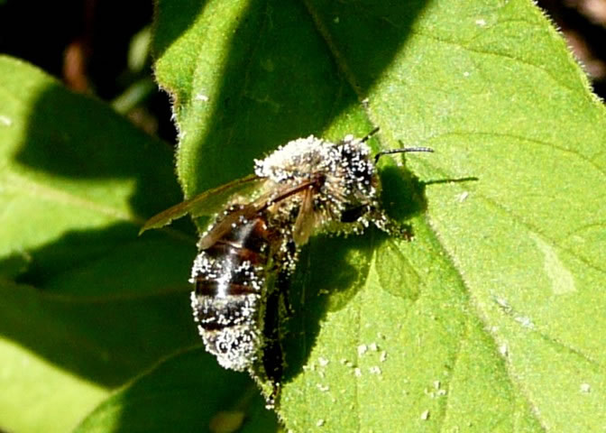 hellen Blödenstoff inpudert. Ut de meist swarte Imm weer en gries