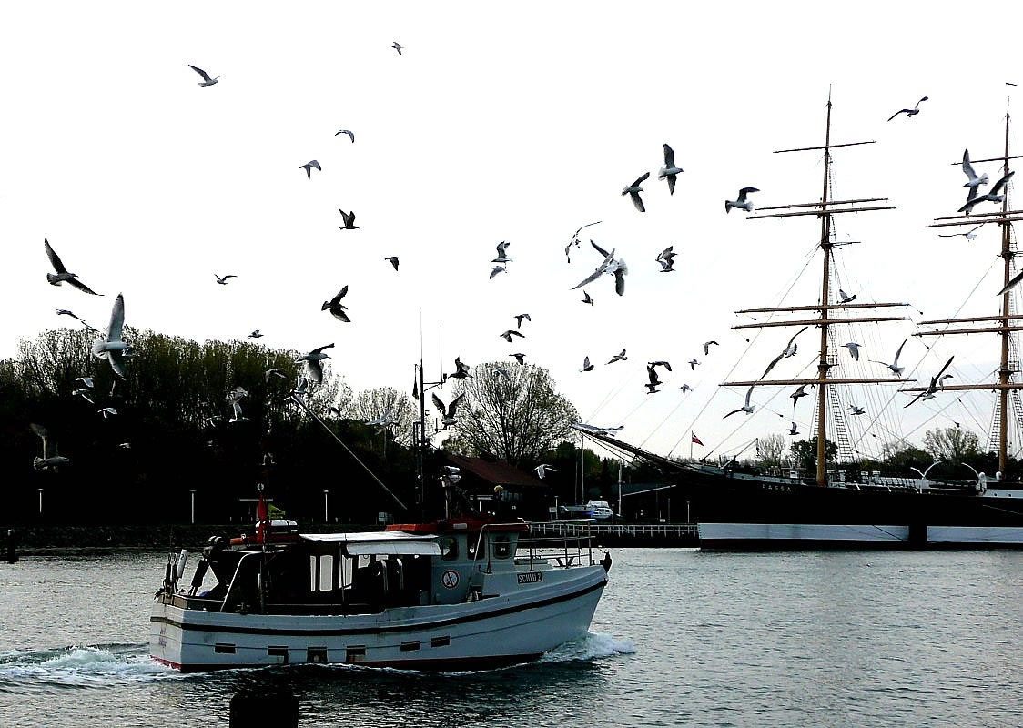 Bi Sünnenupgang keem en Fischkutter vun See. Dat Krieschen un Larmen vun de Möven möök em al vun wieden künnig. He böög vör Tramünn üm de Mool un föhr in Richtung Fischereehaven. Seker harr de Kutter enen goden un rieken Fang maakt. Dat weer Döschtiet! Al up de Trüchfohrt wöörn de Fisch sorteert un sauber maakt un de Bifang un Resten över Bord smeten. Dat weer en lekker Freten för de Möven. Se flögen in dichten Swarm achter den Kutter ran un töövten up niege Fischresten. In de Hööcht vun de "Passat" dat histoorsche Segelschipp bi uns in Tramünn smeten de Fischer wedder wat över Bord. Alltohhop un to glieke Tiet störk de Mövenswarm hindaal un möök sik doröver her. Ünner luthals Krieschen geev dat Striet üm de dicksten Brocken. Dat Water sprütt richtig hoch. Dorna stööv de Swarm uteenanner un dat güng wieder den Kutter achterna. För mi heet dat: "Föhr man gau na den Fischereehaven un kööp Fisch in. Hüüt kriggst du seker enen goden Dösch!" So'n frischen Dösch weer för uns en Festeten. Ok an Hilligavend keem bi uns ümmer Dösch up den Disch. Karpen weer uns to düer. De Dösch weer billiger un ok nich so fett. Wi kunnen em eenfach beter verdregen un he smeck uns ok beter. Dorbi kost hüdigendaags de Dösch an Fischereehaven dat kg bi 5 Euro un de Karpen dat kg 6 Euro. De Snack: "De Dösch is de Karpen vun den lütten Mann!" gellt dorüm egentlich al lang nich mehr. De Biller köönt Se per Klick
