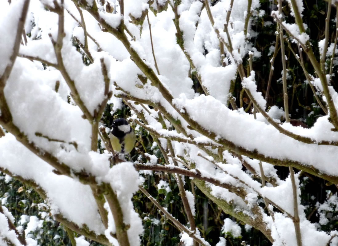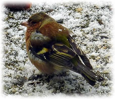 Mit sien groten Ogen keek he mi an. Sien lütten Fööt harr he tosamen krallt, stahn kunn he noch nich. Aver he dreih al den Kopp na mi. Up den Kopp harr he en richtig Buul. Natüürlich heff ik em mit mien Knipskassen fasthollen. As ik noch wat neger ran wull, breet he sien Flünken ut un flöög dorvun. Wat heff ik mi freut! Annern Dag seet he wedder bi mi up den Lünkendisch un hett sik satt freten. An de Buul up den Kopp kunn ik de Blaumeesch, den lütten Pechvagel, mank all de annern Meeschen rutkennen. He kümmt ümmer noch un is wedder richtig kregel. Toeerst sett he sik up den Haken vun de Blomenampel un kiekt üm sik, up de Luft rein is. Denn haalt sik de lütt Pechvagel wedder en Mahltiet vun den Lünkendisch. De Biller köönt Se per Klick