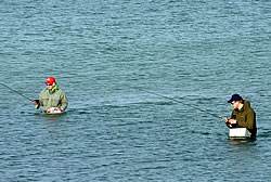 Dicke Wörm op dree Angeln. De Piepser scharp stellt. Nau kann die Waderschlang kamen. Dat is Klook acht. Ik sitt op mien Angelstauhl. Dor .. en Spektakel an dat so stille Wader. An de linke Siet, baven ut de grote Eiken, klatscht en Bünnel Feddern in dat Wader. Dat puhlt sik uteenanner un en Sperber flücht weg. Ünner den Sperber in de lange Krallen en schwatte Vagel. Mi schien, en Drossel. Allens weer in helle Uprägung.