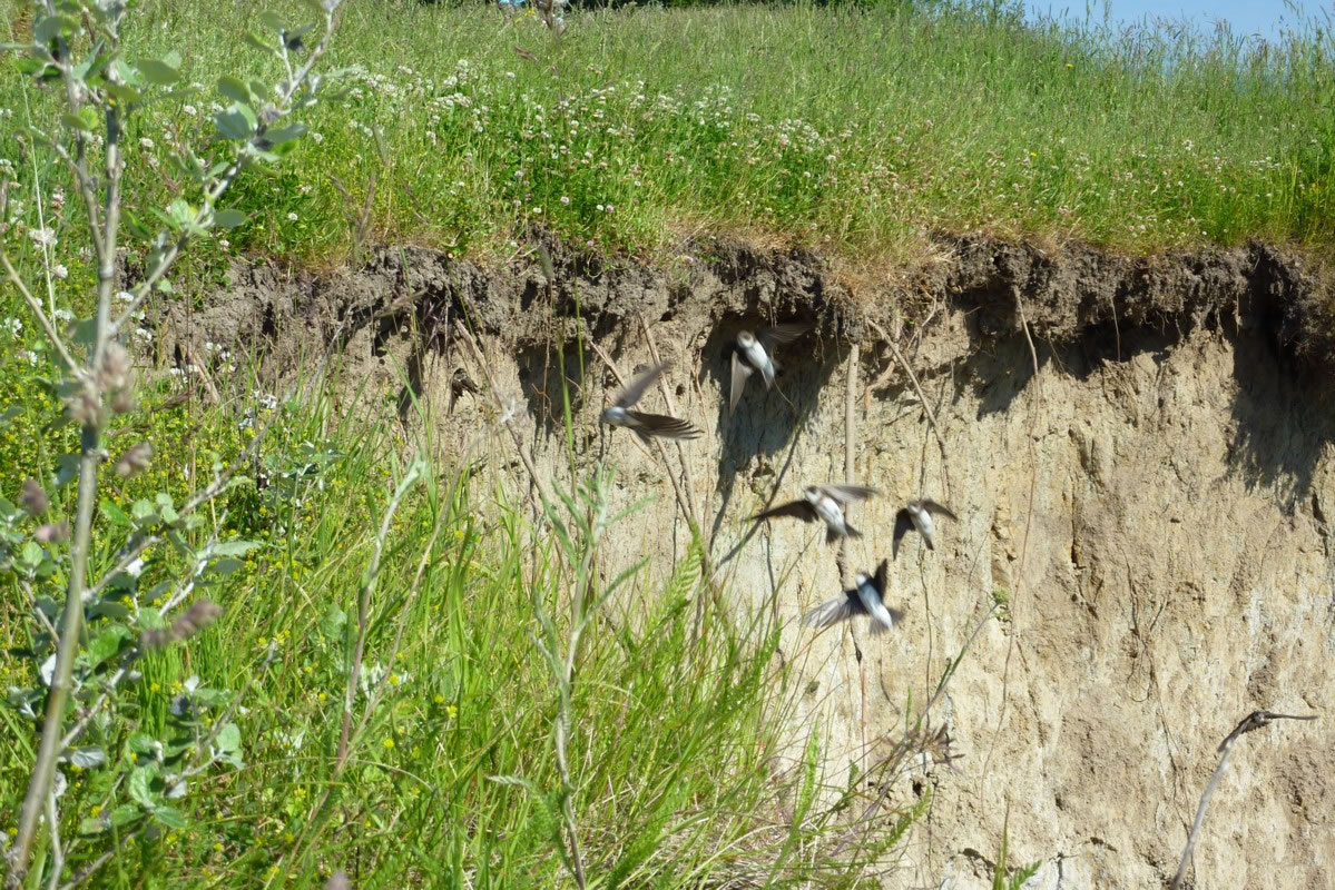 Dorna güng dat wedder na de ünnere Tränke. De viseteeren se nochmal wat ganauer un snattern miteenanner. Ehr'n Döst harrn se löscht, aver för en Nestbu nehm se ehr Eier leggen kunnen, weer hier in düssen Goorn nich de richtige Placken. Se nicken sik mit de Köpp to, breden de Flünken ut un flogen dorvun. De Biller köönt Se per Klick