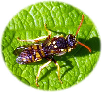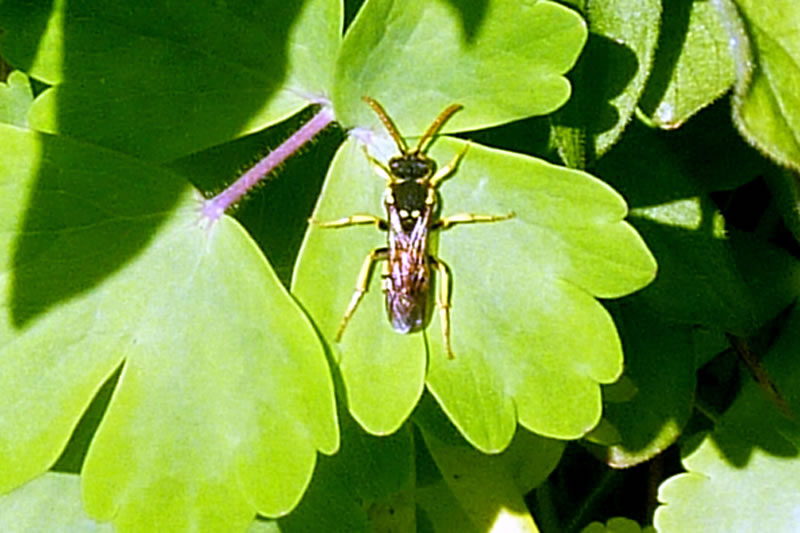 harr meist de glieken In mien Insektenbook heff ik dat Deert funnen. Dat weer en Graafwöps. Un nich blots een! Dor flögen eenige mank de verscheden Planten in mien Blomenrabatt. Un ik kenn se al vun fröher. De weer'n doch schon mal in mien Goorn. Dor harr'n se sik den Lünkendisch utkeken. Nu seten welk up de Bläder vun de verscheden Planten inde Sünn.