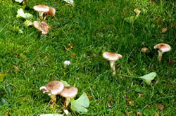 Also, nich dat een denkt, up unsen Rasen liegt Semmel rüm, Rundstücke, Brötchen, nee, up unsen Rasen wasst ünner den groten Barkenboom wunnerhübsche Pilze Poggenstöhl, as vele Plattdüütsche dor ok to seggt. Man ehrlich, een kunn würklich denken, dor liggt en Semmel, also hett mien leef Mann disse Ort Pilz "Semmelpilz" döfft.