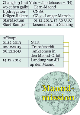 1.3.14 . Jaodehaose rettket vör Kölde un schlöpp wedder in An'n Dingsdag hätt dei 14 Daoge duuren Maondnacht anfungen. Dat Maondfohrtüg van dei Chinesen, "Jaodehaose", geiht so uck in sienen darden Maondschlaop. Dorbi kunn dat Boddenzentrum vörher wisse Kontrollprobleme, dei upträen sünd, nich aale wegkriegen. As dei amtlicke Naorichtenagentur Xinhua meldet, söch dei Stüürmanschkup nao dei Ursaoke för dit Problem. Man is bange, dat dei extreme Kölde, dei unner minus 180°C fallen kann, den "Jaodehaosen" (Yutu) noch mehr schaoden deit. Dei technischken Probleme treten all up, vördem man dat Maondfohrtüg in'n Januar för siene tweide Maondnacht in den Ruhetaustand leggt har. Läöter glöwden dei chinesischken Technikers, dat dei Jadehaose flüsch gaohn was (also verlaren), aower dei Apparaot up den Maond waokede midde Februar wedder up. Radar, Panoraomakamera un dei Infrarot-Anlaoge van den Rover wören wedder in Bedriew. Dei lang duuren Nächte up den Maond sünd orig kold, wiel et up usen Eerdtrabant kiene Atmosphäre giff un also kein Driewhuuseffekt. Up dei Schaddensiete kaomet kiene Sünnenstraohlen an, so läwert in dei Maondnacht dei Photovoltaikplaoten van Jaodehaose kienen Strom. Dei Elektronik mutt denn för den Köldedood wohrt wern. Dat gaiht blots, wenn dei meisten Saoken an Bord utstellt werd. Dei Apparaot schlöpp solange, bit wedder naug Sünnenlecht dor is. Nu mäötet dei Technikers affteuwen, off nao disse darde Maondnacht aals wedder anspring.