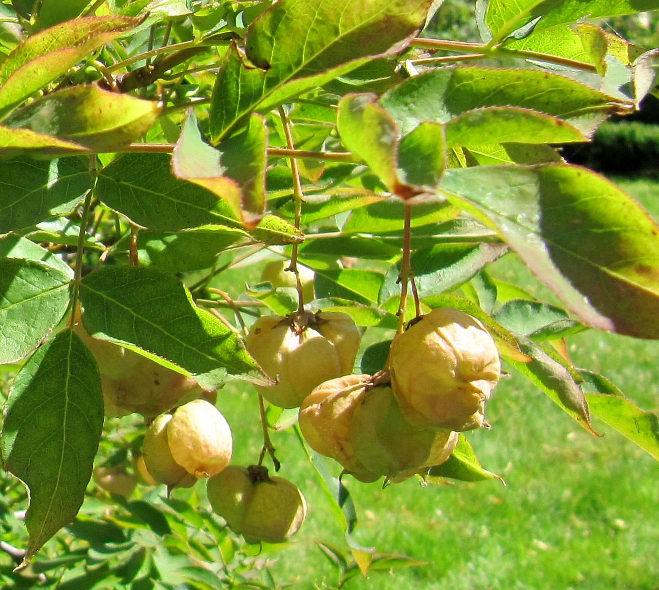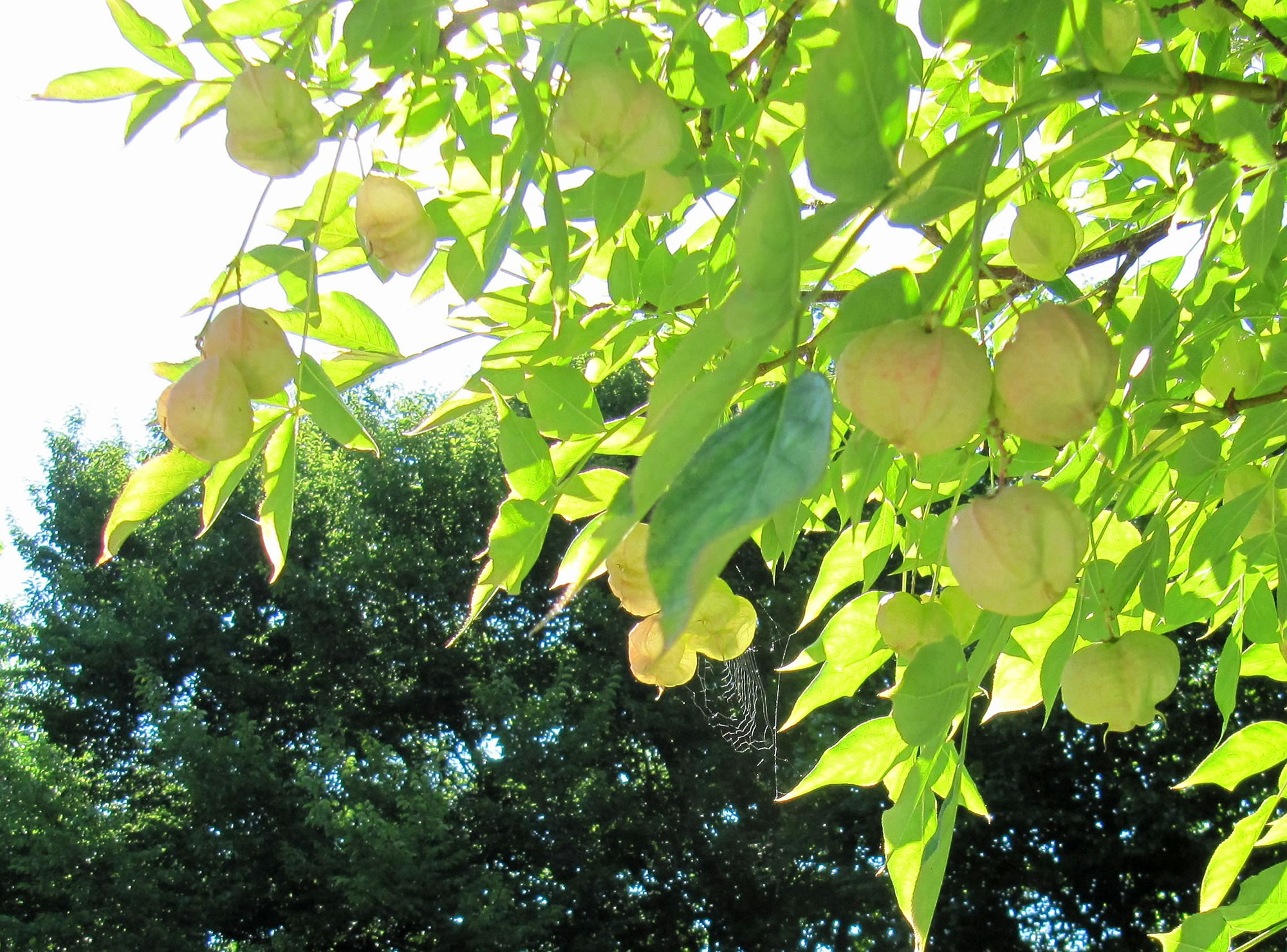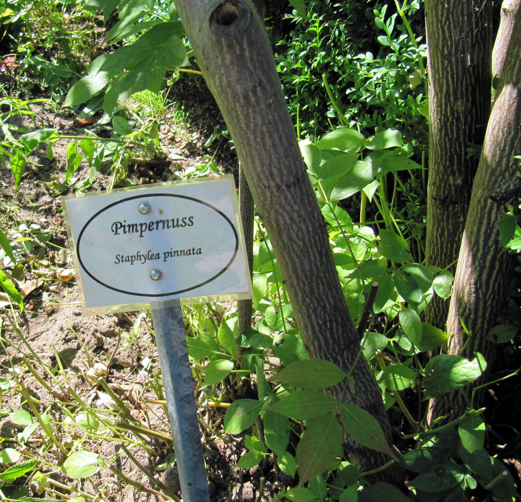 To mien Glück steek en lütt Schild blangen bi in de Erd un dor stünn up: "Pimpernuss. Stapylea pinnata".