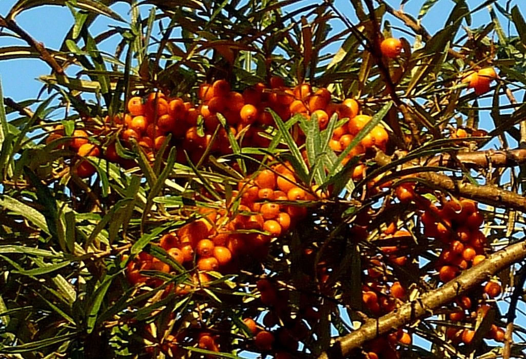 geven hett, denn hangt de swoor sööt Ruuch vun de gären Sanddornbeeren