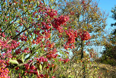 Anner hebbt sogoor noch lüchend rode Beeren an ehr Telgen.