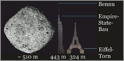 In'n März 2021 giff et ein Fenster för dat Trüggereisen van OSIRIS-REx nao dei Eern. Dor schall dat Ruumfohrtüg in'n September 2023 ankaomen. Dei Proben-Kapsel spring van OSIRIS-REx aff un landet up dat Utah Test- un Training-Gelände in dei USA. In dei Johre 2023 bit 2025 werd dei Proben bi dei NASA ünnersöcht. 75% van dei Proben werd bi dei NASA inlaogert, so kann läöter weltwiet dormit wieder forschket wern. |