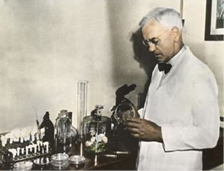 Dit is de britische Forscher Fleming, de in sien Labor Versöök mit lüürlütte Poggenstäuhl Penicillium anstellte. Na de Sommerferien 1928 keem hei vun'n Urlaub in sien Laboor. Un dor sehg hei, dat in lütte Schalen een Pilz de Bovenhand beholen harr: Penicillium notatum. Villicht hett de Laborassistentin vör'n Urlaub beten fix upklåårt un dorbi holpen, en retten Medikament to finnen. Fleming unnersöchte nu jümmer genauer, wat Penicillium notatum dor in sien Labor anstellt harr. Denn mutt een ok seggen, dat en franzöösch Riederhoff-Besitter sik 100 Johr fröher wunnerte, dat welk vun sien düren Pierd ünnern Sattel wunde Steden harrn, welk aver nich. Hei kreeg mit, dat de Pierpleger welk vun de Sättel in en düster, klamme Kamer upbewohrte. De harrn up de Unnersiet so'n witten Belaag. Dat weeren Pilze. Un de Pierd mit disse Sättel harrn keen wunnen Steden. Ok de beiden hebbt dat medizinsche "Penicillin" entdeckt, ahn dat to weiten.