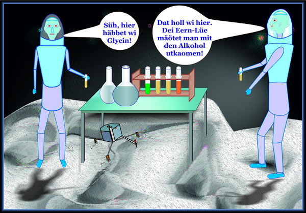 van Ludgerd Lüske Dat Bedüden van Kometen för dat Entstaohn van dat Läben up dei Eern wörd in dei lesten Johrteihnte grötter. Aminosüren sünd wichtige Deile in dei Chemie för dat Läben, so as wi dat kennt. Up väle Ur-Meteoriten giff et Aminosüren, un man glöwt meist, dat dei dör Reaktionen in einen Ruum mit Waoter entstünnen.