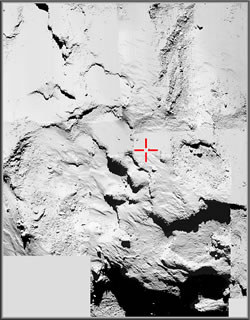 Disse Montaoge ut fief Biller bruukde man tau'n fasteleggen van dei würklicke Landestä. Dei Biller möhm dei OSIRIS-Telekamera an Bord van Rosetta an'n 12. November 2014 up, as Rosetta rund 16 Kilometer äöwer den Kometbodden was. Wohrschienlick hüppkede Philae twei Maol äöwer den Bodden, vördem dei Apparaot up siene leßte Stä stünd. Dat rode Krüz wiest dei eierste Landestä.