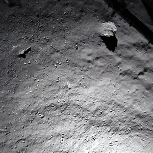 Mit dei Landestäe Agilkia was et nu vörbi. Äöwer 500 Millionen Kilometer is dei Affstand van dei Eern un dei Apparaot steiht nu up eine Stä, dei man noch nich kennt. Rund üm dei Uhr befaotde sick dei Manschkup in dat Lander Control Center mit dei ankaomen Daoten. In dei Nacht was denn klor hei hätt dei sünnerlicken Landesprünge aohne grooten Schaoden äöwerstaohn un hei warket nao sienen Arbeitsplaon. Forts passde dei Kontrollruum-Manschkup dei Kommandos för Philae an dei neie Laoge an. Dit eierste Panoraomabild van den Kometbodden (Bild rechterhand) mök dat CIVA-Kamerasystem un et wiest eine 360 Graod-Ansicht van dei Landestä. Dei Landbeine süht man up wecke Biller.