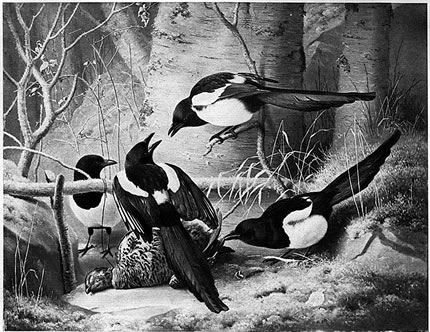 dat de Wenn nu maal en Oos to lang buten liggen blifft, denn ward dat för alle Deerten in uns Gegend so giftig, dat se an starven. Uns Natuur ward meist aver rechttiedig vun uns Sundheitsschandarms uprüümt. Wi bruukt keen Geiers un keen Hyänen, de sogoor dat giftig Oos noch freten köönt. Un as letzte Noothelper hebbt wi denn noch de Bakterien. So is uns Natuur in Wisch un Holt, up Äcker un in Goorns, an Auen un in de Bargen, överall best uprüümt, un de Blaumen köönt bläugen un de Rehn hoppen un saftig Gräun freten, de lüttschen Vagels singen un de Bläder vun de groten Bööm in't Holt ruschen. Is allens best inricht. De Heister is en Vagel, över den de Minschen lang al nadenkt. Se hebbt ehm to en Sinnbild maakt. Bi uns Vörfohren weer de Heisters Baadfruuns vun de Götter, se sünd en Mitgahersch vun Hel, de Göttin vun'n Dood. So verbinnt de Minschen se mit Dood un Malöör. In't Middelöller weer se en Omen vun Leges, en Röversch vun Seelen, de in'n Updraag vun Satan dat Leven, de Seel, slichtweg dat Glück vun de Minschen klaute. Sogoor in de Literatur is vun Heisters de Reed. De Heister duukt all in de iersten Wöör vun Wolfram vun Eschenbach sienen "Parzival" up. In dissen middelhochdüütschen Text (1200 bit 1210) steiht de swatt-witte Farv vun de Heister as Sinnbild för den seelschen Wedderstriet twüschen gaude un böse Minschen.