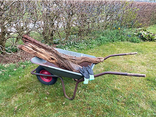 doch schaad üm wesen. Maakt sik goot in'n Goorn! Annerletzt heff ik woller Goorneer un olen Kompost in Dien dicken Buuk vermengeleert. Allerbest Blomeneer för de Pött. Den Kompost hefft wi op de Grööntüüchbeten bröcht, un nu spazeert wi mit all den Rosen- un Heckensnitt kommodig dörch't Dörp na't Oosterfüer hen. Tokamen Week kannst Di verhalen! Bruukst blots 'n beten Regenwater