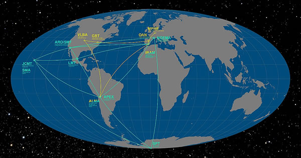Dei Teleskope, dei bi dit Wark mitmöken, wören ALMA, APEX, dat 30 Meter lange IRAM-Teleskop, dat Maxwell-Teleskop van James Clerk, dat grote Millimeter-Teleskop Alfonso Serrano, dat Submillimeter-Array, dat Submillimeter-Teleskop un dat Südpol-Teleskop. Petabytes an Rohdaoten ut dei Teleskope wörden van hochspezialisieierte Supercomputer kombinieiert, dei van dat Max-Planck-Institut för Radioastronomie un van dat MIT Haystack Observatory bewarket wörden. Medienkontakte: NSF Public Affairs, NSF, 703-292-8070, E-Mail:media@nsf.gov NSF-Artikel: