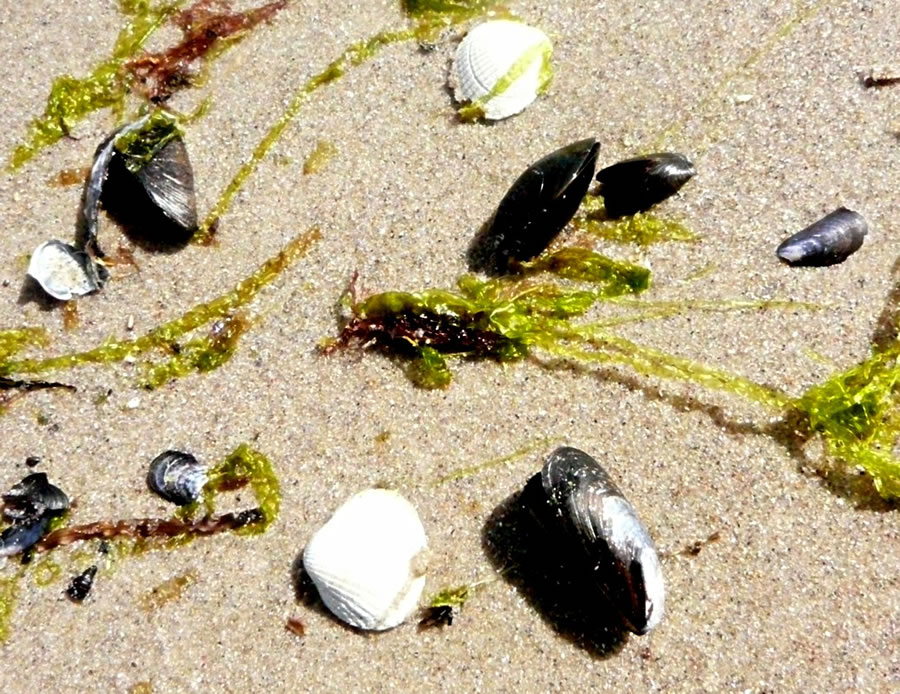 na Muscheln un anner Strandgoot. "Kiek doch mal", reep ik