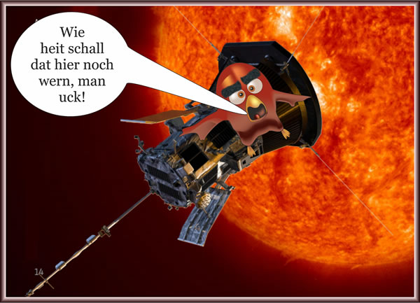 Radiowellen sünd elektromagnetischke Wellen van 30 kHz (also 30.000 Schwingungen per Sekunn) un 3000 GHz (also 3000 Milliarden Schwingungen per Sekunn), also ein heel wiede Frequenzberiek. Dei Sünne gifft en Barg thermischke Straohlung af, dei för ehre Temperatuur-Verdelen typischk is. Wenn dei Sünnenflecken minn sünd, straohlt dei Sünne as ein Swatte Körper. Nich tau glöven, wieldat dei Sünne nich swatt is dei Naom wiest aover bloots up dat physikalischke Phänomen hen, dat ein Körper rein thermischk straohlt. Bi dei Sünne gifft dat aover Verännern je na dei Sünnenflecken, Protuberanzen usw. Dor hätt dei RPW orig wat tau mäten. Aover wat sünd düsse Plasmawellen? Ein Plasma is so hitt, dat sik dei Atome deilwies uplösen daut. Dei frieen Buustein van dei Atome suust denn, tosamen mit Atome, dei sik noch nich uplöset hebbt, in so'n Aart Gas rüm. Dat is in dei ganze Sünne dei Fall. Plasmaphysik Dei Plasmaphysik befaotet sick as dei Naome sägg mit dei physikaolischken Eigenschkupen van Plasmen.