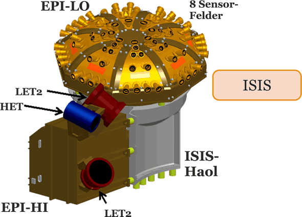 affännert Dit System hätt twei affwesseln warken Instrumente. Dei werd tausaome insettet tau'n Mäten van Deilkes äöwer ein breiet Energiespektrum. Dör dat Faoten van Elektronen, Protonen un Ionen schall ISIS dei Läbenszyklen van dei Deilkes wiesen: wo dei herkaomet, wie dei up ehre Geschwinnigkeit kömen un wie dei dör den interplanetoren Ruum van dei Sünne wegfleiget. Dei beiden Instrumente för dei energiedrägen Deilkes up ISIS heitet EPI-Lo un EPI-Hi (EPI staiht för Energetic Particle Instrument, Lo un Hi för Low (ring) un High (hooch)). EPI-Lo mätt dei Spektren van Elektronen un Ionen un wieset disse Saoken an: Käöhlenstoff, Suurstoff, Neon, Magnesium, Silizium, Iesen un twei Isotope van Helium, dat He-3 un dat He-4. Dat Uteinannerhollen van dei beiden Heliumisotope schall helpen bi dat Bestimmen, wecker van dei denkboren theoretischken Mechanismen dei Deilkes up ehre Geschwinnigkeit bröchten. Dat Instrument hätt ein einmaoliget Design bold at ein See-Ägel mit ein achteckiget Kuppeldeil, dat 80 Seukers drägg, wovan jedet bold dei Grötte van ein 20 Cent-Stück hätt. Mehrere Seukers gäwt ein breiet Sichtfeld tau'n Faoten van Deilkes mit minne Energie. Ein Ion, dat dör einen Seuker in dat EPI-Lo infallt, löpp taueiers dör twei Käöhlenstoff-Polyimid-Aluminium-Folien un stött denn up einen Faststoffdetektor. Bi dit Upstöten gäwet dei Folien Elektronen aff, dei van eine Mikrokanaol-Plaote mäten werd. EPI-Hi hätt drei Deilken-Sensoren, dei ut staopelte Detektoren bestaoht, tau'n Faoten van Deilkes mit Energien, dei höger sünd at bi dei Deilkes, dei EPI-Lo faoten dö. Dei vördersten Laogen bestaoht ut ultradünne Silizium-Detektoren, dei ut geometrischke Segmente bestaoht. Dormit kann man dei Richtung van ein Deilken faoten un uck dat Achtergrundbruusen daoldrücken. Uplaoden Deilkes werd anwiest, wobi man mäten dait, wie deip dei sick in den Detektor-Staopel indrücket un woväle Elektronen dei in jeden Detektor van dei Atome affschlaot (= Ioniseiern). Denn kann bi dat naokaomen Anfleigen an dei Sünne dat EPI-Hi bold 100.000 Deilkes in dei Sekunne taufaoten kriegen. Dör den Insatz van disse beiden Instrumenete ünnersöch ISOIS aale Energien van dei solaren Energie-Deilkes un uck van dei energiedrägen Sünnenwind-Deilkes, dei Sweap nich faoten kunn. Süh hier dit Video: ISIS