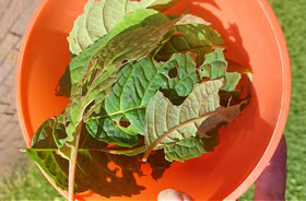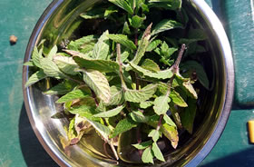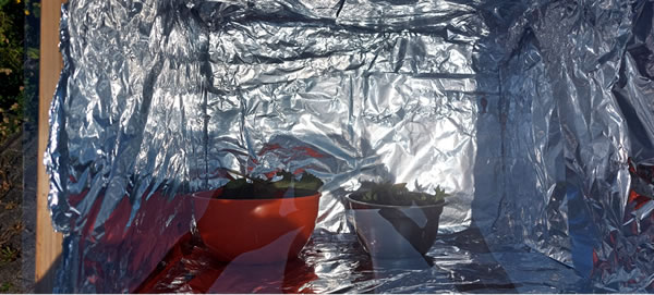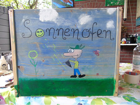 Vör de apen Siet warrt noch en Plexiglasschiev monteert. Plexiglas kannst ok heel good bearbeiten un denn jichenswie bündig maken, dat an de Sieden nich to veel Warms verlarengeiht. Op't best kannst de Schiev mit Metallwinkel fastklemmen. Schöön dicht un togliek licht optokriegen. Fertig. Se ahnt dat al: Düt is en Döör- un Dröögaven. Wenn du den na de Sünn dreihst, hett de Aven binnen in Nullkommanix 70°C. Ik will düsse Krüder drögen un Tee dorvun maken. Dat sünd Minze un düsse japaansche Teehortensie. De Minze is heel aromatisch, anners as de ut't Reformhuus, veel intensiver. Aver ok lecker. Kannst aver ok Petersilie orr Aavt in den Aven drögen. Allens even, wat geiht.