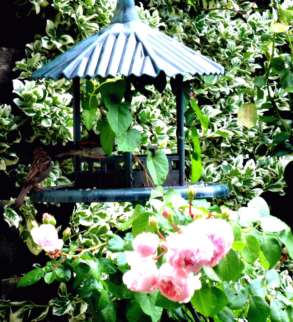 Oftins geev dat Striet üm dat Foder. Se slogen mit de Flünken un güngen upenanner daal. Dat weer so dull, dat de Ampel in't Schaukeln keem. De hung ja ok blots an en Keed. Wi harrn uns Freud an dat Drieven in de Vagelampel.