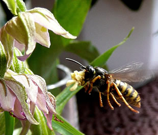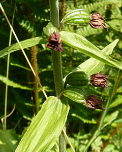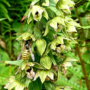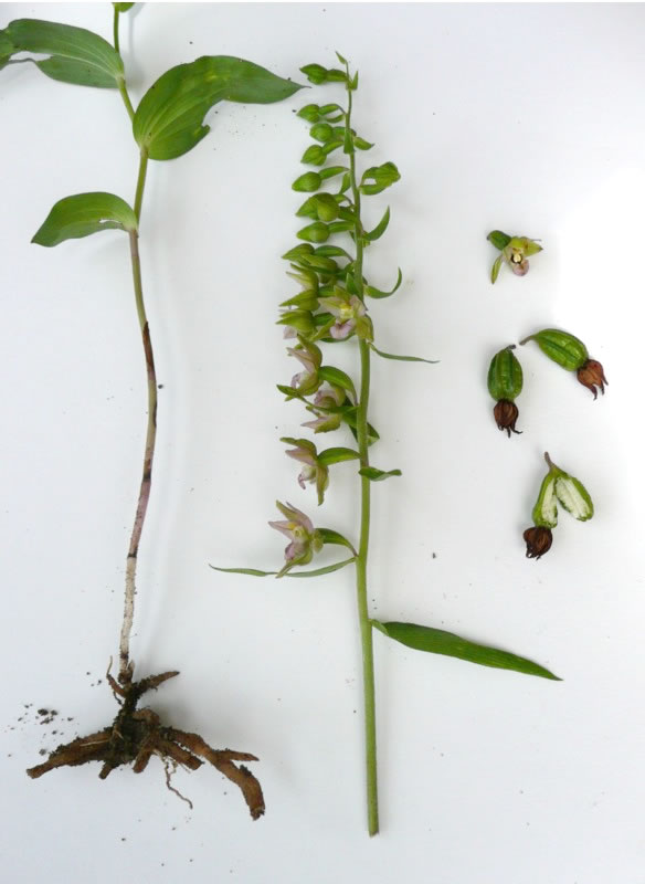 To'n Anhören hier klicken: Lesen deit Antje Heßler in Holsteener Platt. De Stendelwurz tellt to de heimischen Orchideen. Düsse Oort is bi uns in de Natuur an meisten antodrapen. Aver de Levensruum warrt in eenige Gegenden slechter un de Bestand nimmt af. Dorüm is se vun den "Arbeitskreis Heimische Orchideen" as Orchidee vun't Johr 2006 utsöcht woorn. Se wasst meisttiets in'n Halvschatten an de Kant vun en Woold. Ut de Eer drifft se am Enn vun den Maimaand un warrt twischen 20 un 100 Zentimeter groot. Se is en taag un krutig Plant. De breden Stengelbläder sitt neern an den Stengel. Vun Juli bit August wiest se ehr wittrosa bit gröönlich Blöden. De enkelt Blööt ist twors bannig lütt, hett avers dat typisch Utsehn vun en Orchideenblööt. Dormit ehr Blöden bestöövt warrt, geiht de Orchidee ganz vigeliensch vör. Se lockt Insekten mit ehr smucken Blöden an. Meistiets sünd dat Wöpsen. De kruupt in de Blööt, üm sik den Nektar to halen. Dorbi kleevt de Orchidee de Wöps ehr Pollinien an den Kopp. Pollinien sünd bündelt Pollen. Oftins is de Wöps so mit Pollinien bekleevt, dat se kuum noch kieken kann. Na den Besöök flüggt de Wöps mit geel smückten Kopp in de neegst Blööt. Dor verleert se en Deel vun de Pollinien (uff!, seggt de Wöps verlichtert) un bestöövt so de neegst Blööt. De Orchidee hett so enen Gegendeenst vun de Wöps kregen. Na dat Bestöven sett se Kapseln mit Samen an. Wenn de in August/September riep sünd, maakt de Orchidee de Kapseln up un de fien Samen warrt vun den Wind wiet utstreut.