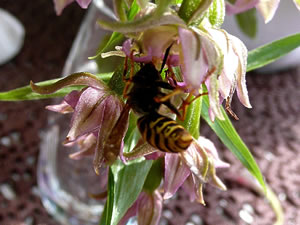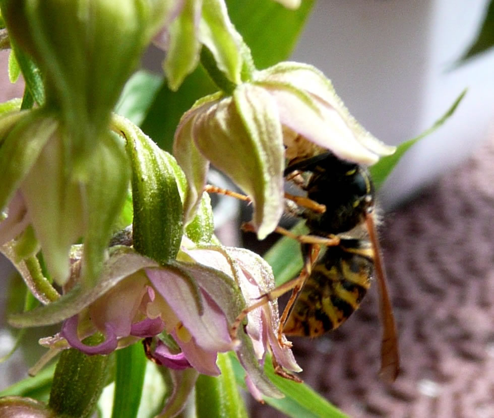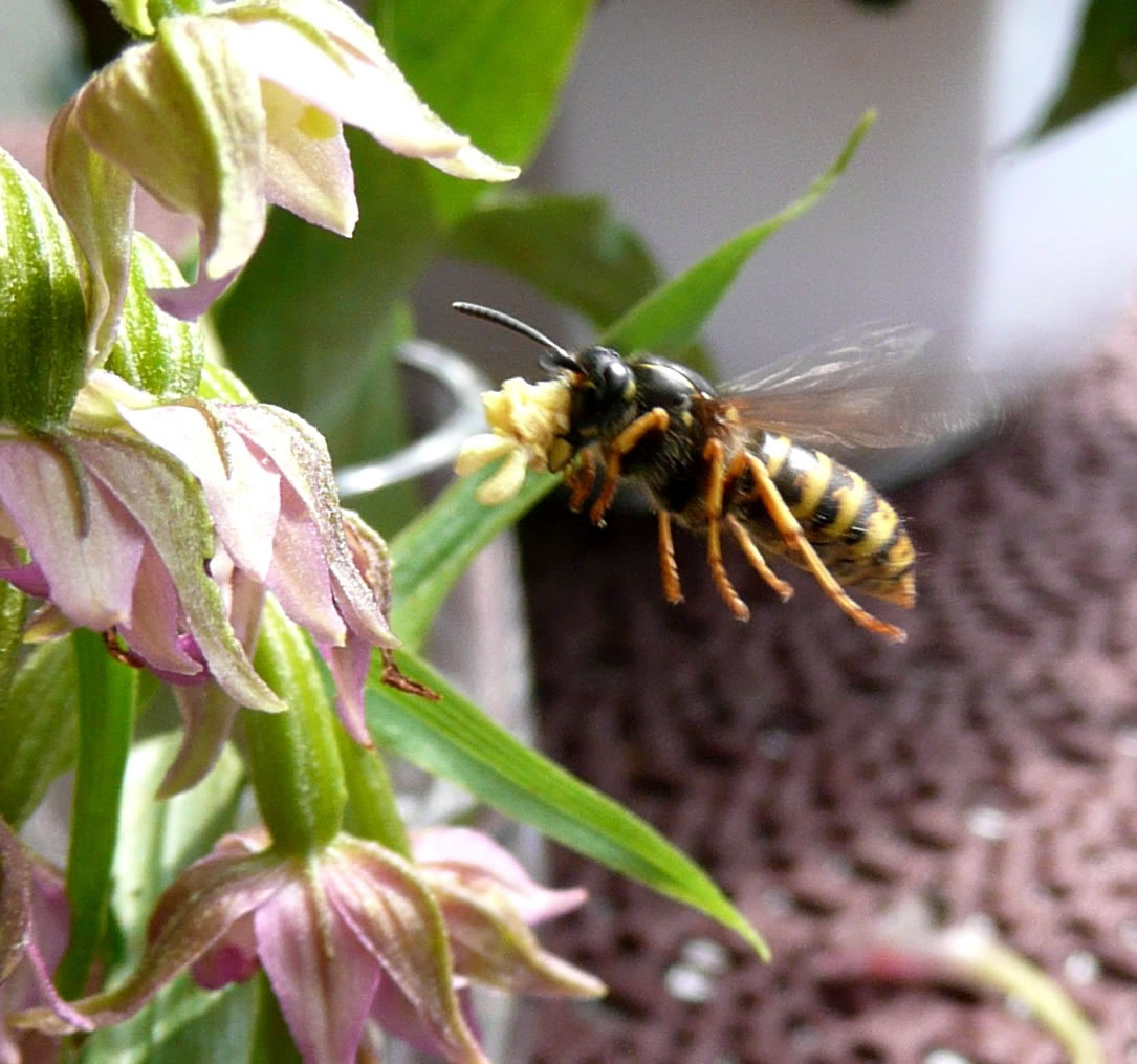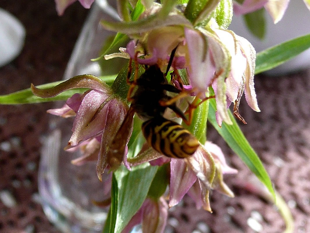Stendelwurz in mien Goorn Up düsse Oort mütt wull ok al vör tominnst twintig Johrn Orchideensamen vun den Stendelwurz in mien Goorn weiht sien. As ik bi mi de eerst Orchidee wies wöör, heff ik mi bannig freut. Se stünn in unsen Rasen. Dormit se nich afmeiht wöör, heff ik ründ üm de Orchidee dat Gras mit de Scheer afsneden. Den Naam vun de Orchidee wüssen wi dormals noch nich. Jedes Johr keek ik wedder na de Orchideen ut. Nu is wedder de Tiet, dat se ehr Blöden upmaakt. Dütmal sünd ganz besünners grote Planten dorbi. En Orchidee is wull söventig Zentimeter hoch. De Farv vun de Blöden geiht vun wittrosa bit gröön. De Wöpsen liggt al in de Moornstünn up de Luur. De Ruuch un ok de Farv lockt se wull an. Stücke fief Wöpsen fleegt mitünner to glieke Tiet üm en Orchidee. Ümmer wedder heff ik mienen Spaß, wenn se in en Blööt kruupt un mit den vun Pollinien dicht backten Kopp wedder rut kaamt. Vör en poor Daag harr ik en afbraken Orchidee in en Glas mit Water up mienen Disch stellt. Ok dor keem glieks en Wöps anflagen. Se leet mi niep un nau tokieken, woans se in en Blööt krööp. En ganzen Stoot kunn ik blots ehr'n Achterliev sehn. Mit enen vun Pollinien ganz geelen Kopp keem se wedder to'n Vörschien. So flöög se na de neegst Blööt. Dörch düsse heimische Orchidee wöör mien Vörleev för Orchideen waak. Aver dormals weern de tüchten Orchideen noch to düür. Un se bruken ok noch besünnere Pleeg. Eerst in de letzten Johrn staht bi mi Orchideen in't Stuvenfinster.