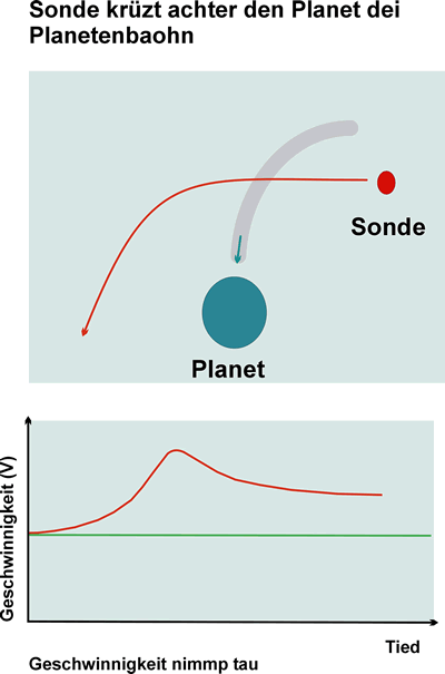 Eine Sonde, dei dör ein Schwunghaolen (Swing-by) affbremsen schall, kummp van achtern an den Planet ran, flügg an üm vörbi un krüzet siene Ümloopbaohn aower vör üm. So flügg dei Planet bi den minnsten Affstand up dei Sonde tau. Dorbi werd dei Sonde gägenäöwer dei Sünne affbremset.