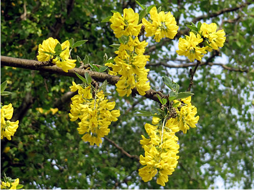 De Guldregen stammt ut Südeuropa, diegt aver ok bi uns in'n Noorn good un warrt vunwegen sien schöne Blöden veel as Zierstruuk anplant. De Plant hett in all ehre Dele giftige Alkaloide in sik. Al twee bet dree Samen köönt Kinner to'n Dood bringen. De Samen stekt in Schoten, de Arften- orr Bohnenschoten liek seht, un se smeckt nich bitter, dorüm is besünner Vörsicht nödig.