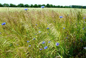 De Roggenbloom is dörch ehr upfallend Faarv ok in vele Symbole to finnen. Königin Luise hett se to de "Preußische Bloom" maakt. För Kaiser Wilhelm den I. weer dat de Leevlingsbloom. Hüüt noch snackt wi bi en bestimmte blage Faarv vun "Preußisch Blau". So en smuckes un reines Blaag finnt wi kuum bi en anner Bloom. Wat schöön, dat se hüüt wedder dörch dat Ackerrandstriepenprogramm antodrapen is. |
