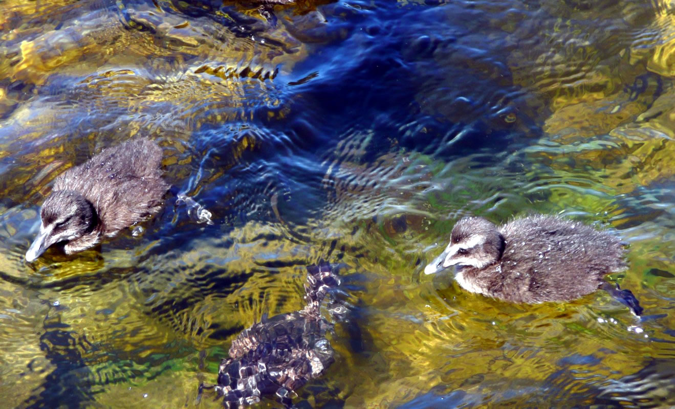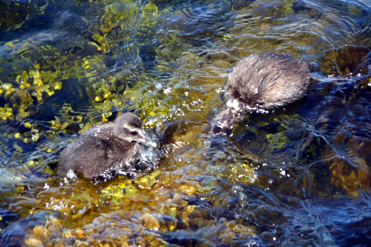 Aantenküken wies. Dat weern wohrhaftig junge Eideraanten! Dicht