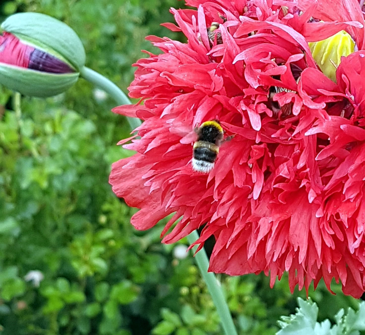 Trüch kaamt Se denn mit den Zurück-Knoop op de Browser-Symboolliest. Nu fleegt de letzten Hummeln un seggt den Sommer Adjüs. Wi seht de rundlichen propperen Deerten sacht an uns vörbibrummen un erinnert uns: Dat ward seggt, de sworen Insekten köönt eentlich gor nich flegen! Naja, egentlich stimmt dat ja ok. Sülvst hooch acht'te Wetenschoplers rievt sik de Ogen, wenn so en Brummer an jüm vörbiflüggt, wo doch all bither bekannten Formeln un Bereken, de to'n Bispeel för Fleger gellt, dorgegen spreekt. Egentlich köönt Hummeln gor nich noog Drift mit jümehr Flögelslag togang kriegen, dat se in'e Luft blievt egentlich! Aver Hummeln weet dat anschients nich un dorüm fleegt se eenfach los! De Effekt is avers nich rein psycholoogsch, denn sünst kunnen Minschen dat ja ok versöken. De Hummeln beweegt jümehr Flögel nich eenfach op un daal, sünnern hen un her also vun achtern na vörn un trüch un in Krinken. De TÜV hett sik dormit befaat un rutfunnen, dat de Frequenz 200 Hz is, also 200 Flögelslääg per Sekunn. Mit düsse Bewegen maakt se en Luftkrüsel, de jüm Drift gifft un jüm wunnerbor flegen lett. Un to'n Glück köönt se flegen, denn se sünd wichtig för dat Bestöven vun Blöten, sünnerlich in'n Fröhjohr, wenn dat för de Immen noch to koolt un noch nich kommodig is. Biller: Angelika Cordes 8.9.2024