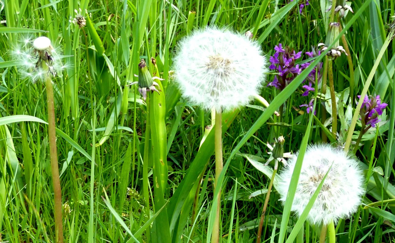 De Zittlööschenwisch weer nu en Orchideenwisch. Ümmer mehr verscheden Planten weer ik wies woorn. Vun de Hunnenblööm gor nich to snaken. De hebbt mit ehr gelen Blödenköpp mit de gelen Zittlööschen üm de Wett blöht. Nu weern an de Blödenköpp blots noch de smucken Samenkugeln. Dat weer'n de so nöömte Pusteblööm.