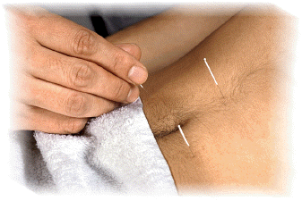 Meist fangt he mit lütte Nodeln in de Ohrmuschel an un geiht denn wieder öber den Arm or den Rüch, männichmool dool bit ünnen an de Feut. He weet öber all diene Stroten Bescheed un weet, wo di dat piert un wo he meent, dat he noch wat an de Siet schuben mutt. Dat, wat he mit di mookt, hett Sinn un Verstand un is siet öber 4000 Johr de Heilkunst in Asien. Ik heff mol tellt: Bi miene letzte Sitten weern dat veerundottig Nodeln in miene perseunliche Autobohn. Vun mien Ohr bit an mien Knöchel is oprüümt un wegschoben worrn. Weh deit sowat nich, du muss bloots oppassen, dat dien Spezi denn ok, as bi mi, alle veerundottig Nodel wedderfindt. Ansünsten geiht di dat as nüülich de hübsche junge Fro. De hett mit ehren Scharm mienen "Meister der Nadeln"