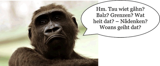 mit Wür, Ogenupschlach un'n grienigen Blick den annern Minschen